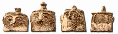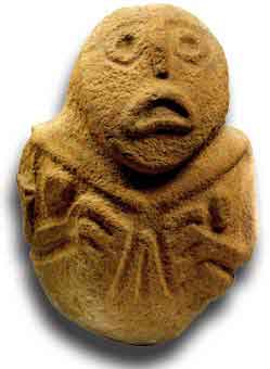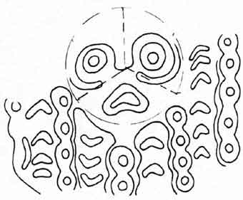 | Zumeist mundlose Gesichtsurnen mit der Zyklensymbolik und Ton-Idole finden sich zahllos während der Jungsteinzeit. In Troia in der Bronzezeit und im gesamten Europa (Müller-Karpe). Nach Süd und Mittelamerika kamen sie mit den Megalithikern und später (de Mahieux). Die Steinkreise der Megalithiker und die liegende Acht (Kultaxt) waren Symbole der Ewigkeit. Auf keltischen Münzen und noch bis ins frühe Mittelalter läßt sich diese Tradition verfolgen. |