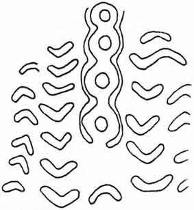 Mäandermuster, die schon im Magdaénien in Mezin, Ukraine und in Vilhonneur, Charente, Frankreich vorkommen | ||||||||||||